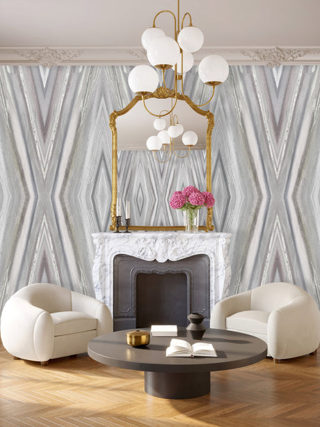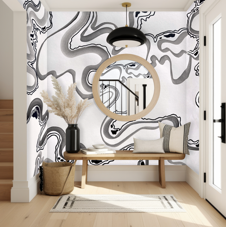 From $400Unit price /Unavailable"Grey Wave" Wallpaper | Oversized Wall Mural By Vivian Ferne | Blue & Misty Gray Design