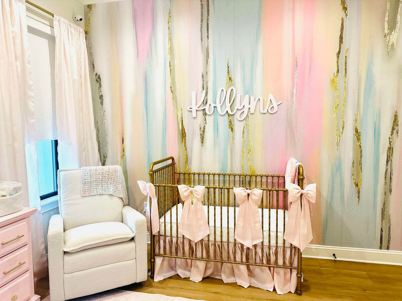 Divine nursery design featuring our "Served Cold" wallpaper and pink bows! Nursery wallpaper can bring the whimsy to a space in less time than painting.