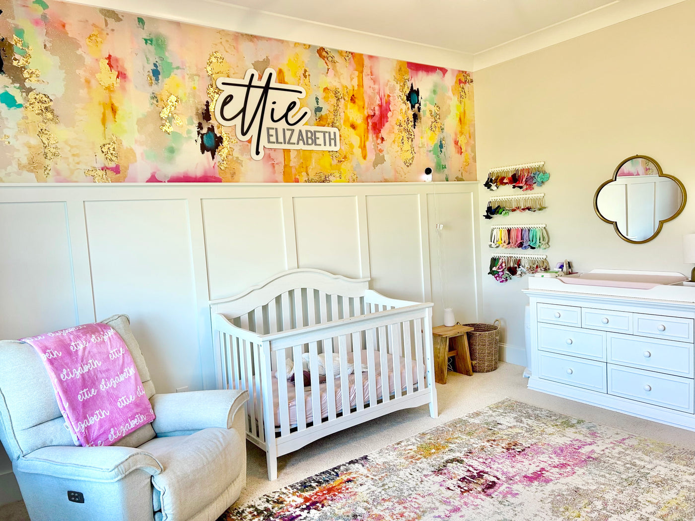 Coronado is an airy wash of blush, coral, sunshine yellow, teal, and soft neutrals, kissed with shimmering metallic details that catch the light. The design feels like a modern watercolor mural, with vertical strokes and organic texture that add movement without overwhelming the room. It’s the perfect statement backdrop for nurseries, playrooms, studios, or anywhere you want a bright, art-forward focal wall